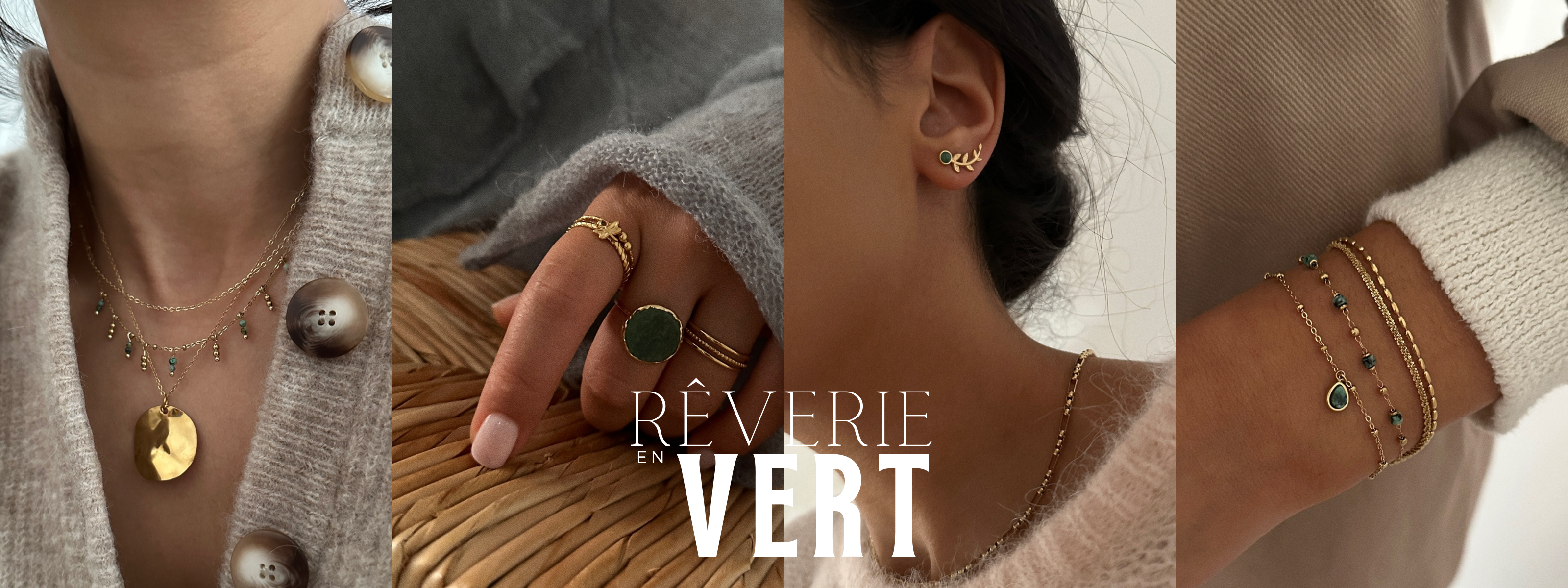 Aventurine, péridot et tourmaline s’entrelacent dans une symphonie de verts, associés aux chaleureuses teintes ambrées. Laissez-vous séduire par la palette infinie de nuances vertes et de pierres, conçue pour s'adapter à chaque ton de peau.
