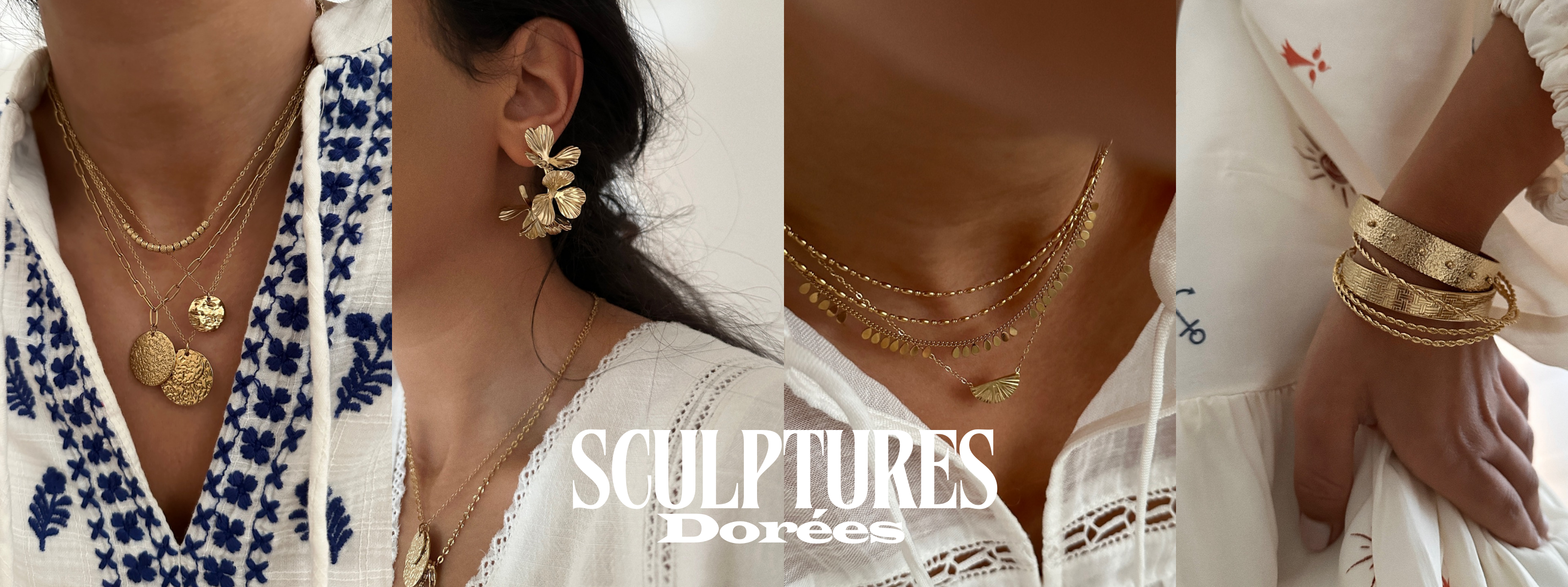 Les bijoux s’imposent comme des totems de peau – façonnés comme des fragments d’atelier: martelés, torsadés, embossés dans le geste. À porter comme on marque un moment, comme on sculpte un souvenir.